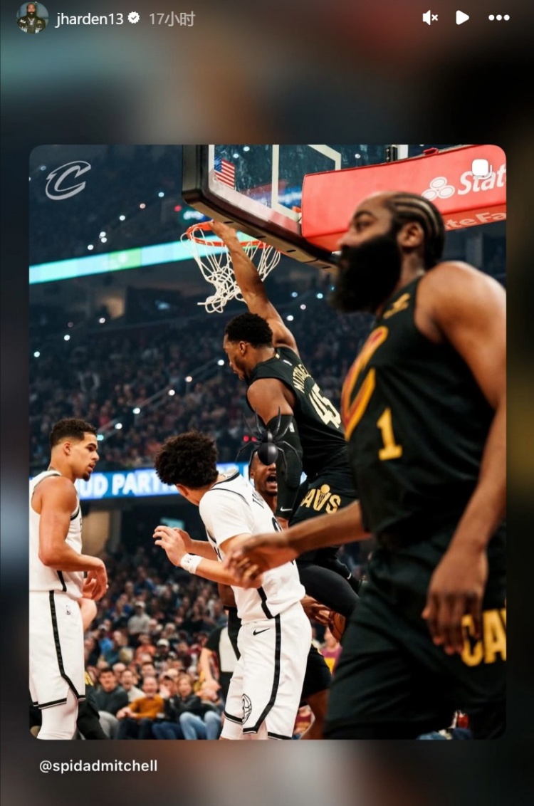 世界名画!哈登助飞米切尔空接 赛后两人转发定格的瞬间