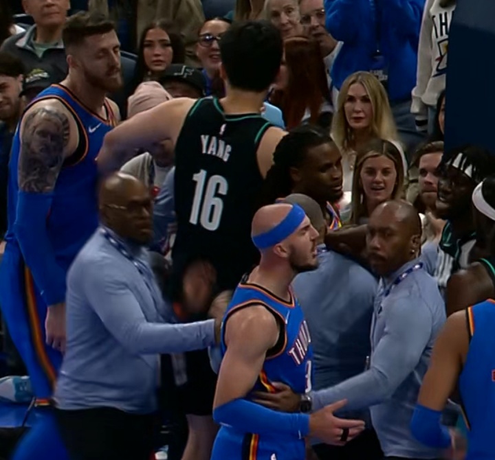 杨瀚森3分1助1帽1劝架 亚历山大28分雷霆半场领先开拓者21分