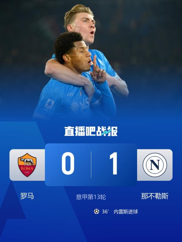 罗马主场0-1不敌那不勒斯让出榜首,霍伊伦助攻内雷斯单刀制胜。