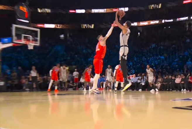 这什么模型怪!文班一防二完成盖帽 回头弧顶轰三分 厉害炸了