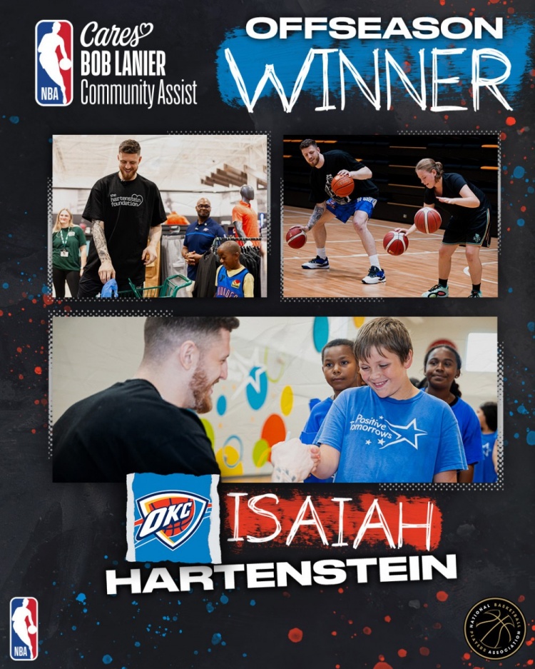 NBA官方:雷霆中锋哈尔滕施泰因获得休赛期鲍勃-兰尼尔社区关怀奖