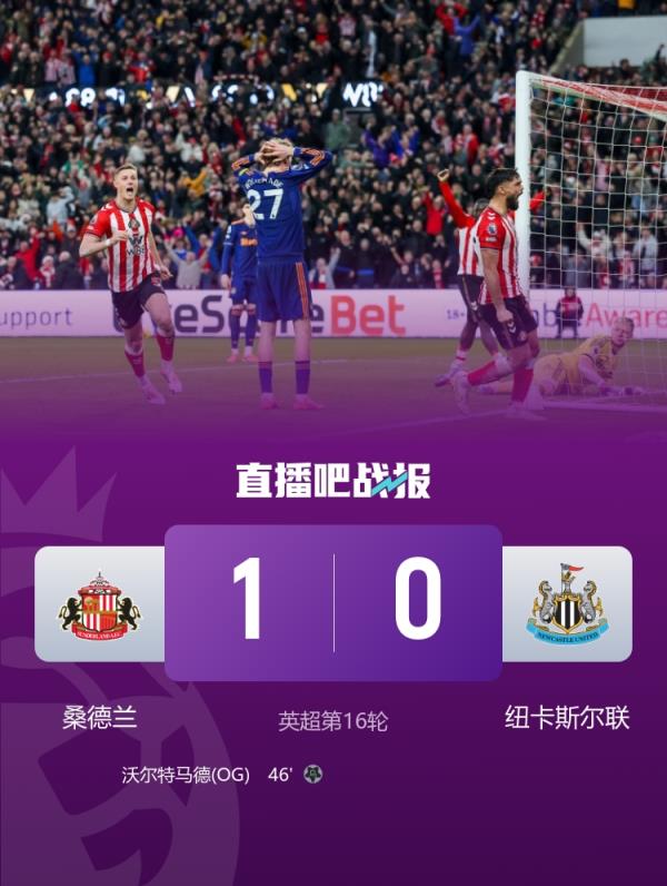 德比肉搏战,桑德兰vs纽卡全场射门数、预期进球均创本赛季最低