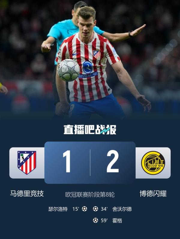 马竞1-2不敌博德闪耀。积分榜方面,马竞积13分排名第14位,博德闪耀积9分排名第23位,两队均进入附加赛。